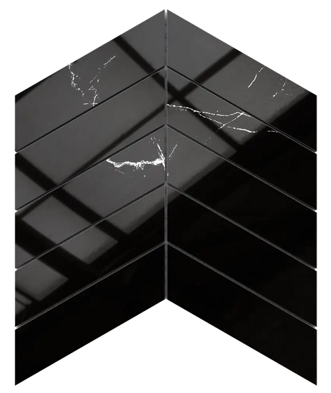 Mosaico in gres su rete per bagno o cucina 24.6 cm x 25.2 cm - Black veins arrow