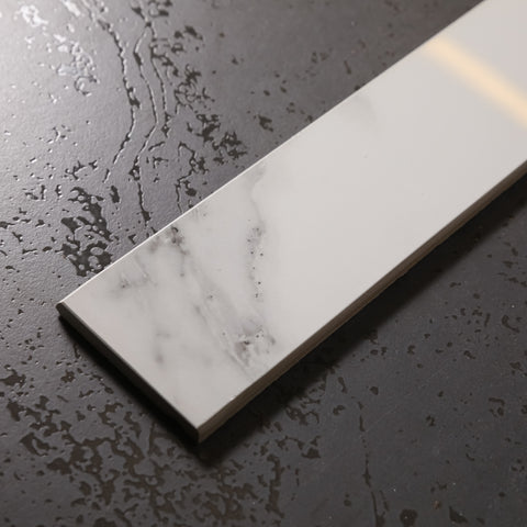 Il nostro battiscopa in ceramica è realizzato con taglio ad alta precisione per garantire una finitura perfetta e una posa professionale. Il bordo superiore smussato e colorato assicura una continuità estetica impeccabile con la nostra piastrella, Swiss white grey, senza differenze di tonalità.