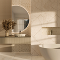 The natural stone mosaic stands out for its resistance to water and humidity, making it perfect for use in high-moisture environments such as bathrooms, kitchens, and saunas. It is ideal for decorating walls next to sinks, bathtubs, and showers. The mosaic's finish fits perfectly with modern and minimalist designs, adding a touch of elegance and sophistication to the spaces.
