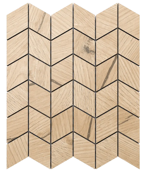 Mosaïque en grès sur filet pour salle de bain ou cuisine 29,0 cm x 25,2 cm - Chevron érable
