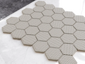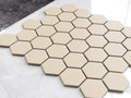 Mosaïque en céramique hexagonale sur filet pour salle de bain ou cuisine 32,3 cm x 27,7 cm - Beige hive