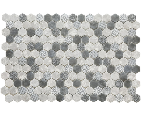 Mosaïque en verre pressé sur filet pour salle de bain et cuisine 52 cm x 34 cm - Hexa olden mat